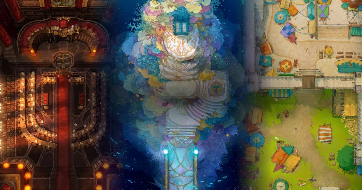 Detailed, narrative-rich locations. Our maps are designed for anything from exploration and social encounters to tactical combat and epic set piece battles.